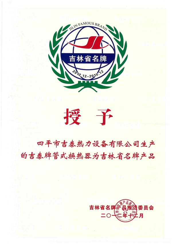 四平市吉泰熱力設備有限公司始建于1996年,坐落在全國衛(wèi)生園林城市,擁有“中國換熱器基地”美譽的四平市,公司擁有雄厚的技術(shù)力量和人才優(yōu)勢,國內(nèi)生產(chǎn)設備,完善的檢測手段,是吉林省集設計、開發(fā)、生產(chǎn)經(jīng)營于一體的換熱設備生產(chǎn)企業(yè)。